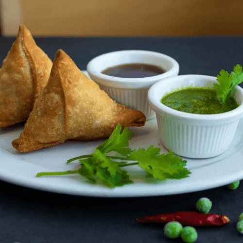 Two pastries filled with curried potatoes.