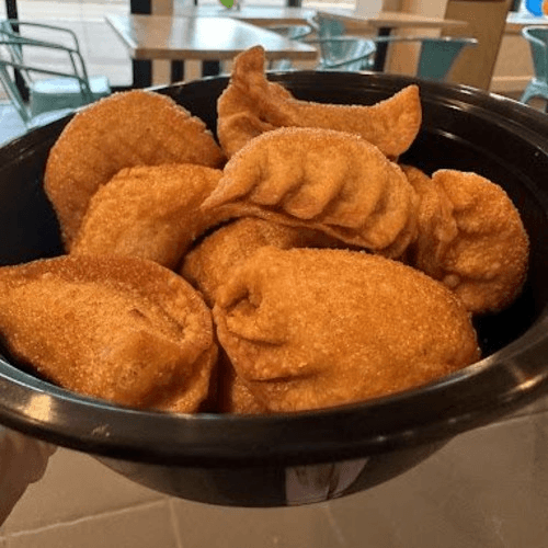 Dumplings filled with seasoned ground pork, served with a fiery sauce made with bell peppers, onions & tomatoes