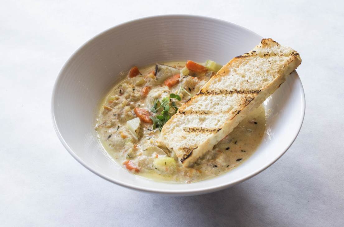 made to order mussels, chopped clams, fresh fish, shrimp, roasted garlic cream, potatoes, carrots, bacon, okra, caramelized onions